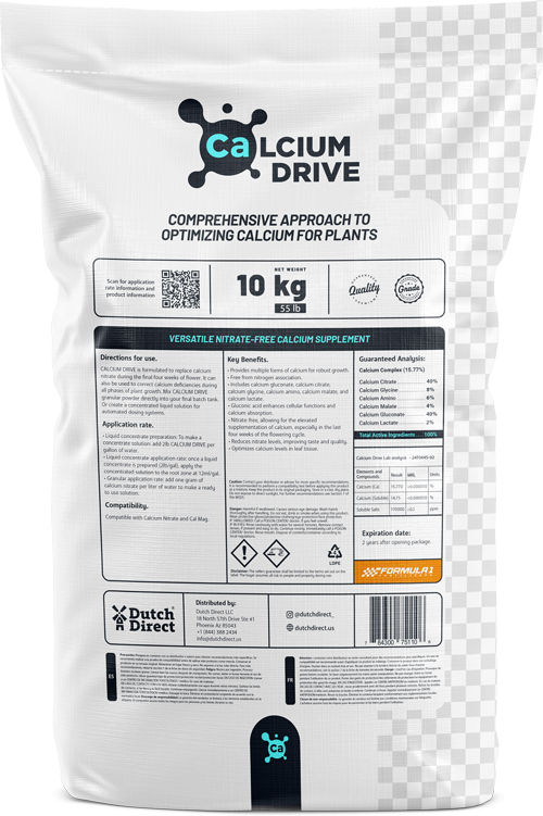 Calcium Drive allows plants to adeptly assimilate and utilize larger volumes of essential nutrients during pivotal growth phases, resulting in accelerated growth, increased vitality, and deeper genetic expression.