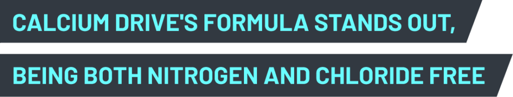 Calcium Drive’s formula stands out, being both Nitrogen and Chloride free. By leveraging a blend of chelated calcium forms known for superior absorption rates, Calcium Drive ensures efficient calcium uptake without the complications of excess nitrogen or chloride.
